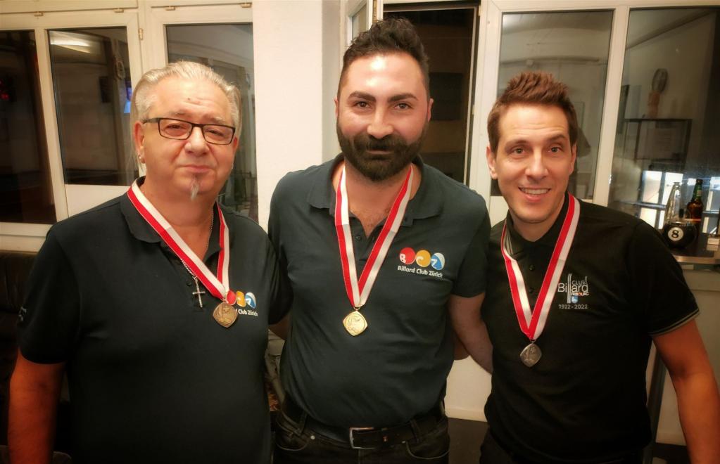 Seyit Harimci gewinnt Gold für Zürich in der Finale Dreiband LR, am 10. Dezember 2022, gespielt beim Billard Club Zürich. Antionio Chiauzzi holt sich Bronze. Gratuliere, Seyit und Antonio!